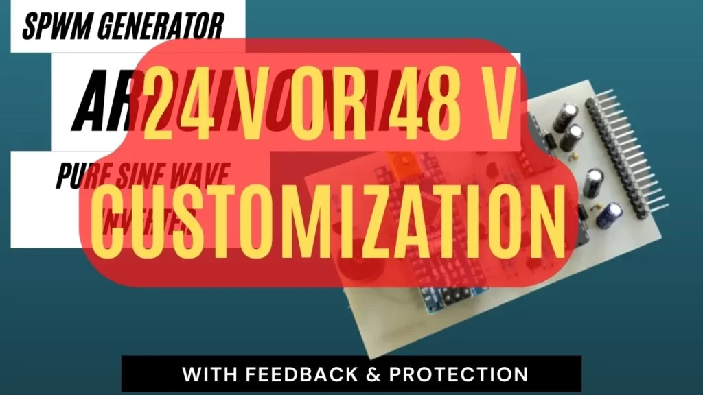 My Arduino Nano SPWM working voltage is 12V, we need to change the voltage divider network if we want to work with other voltages such as at 24V/48V.