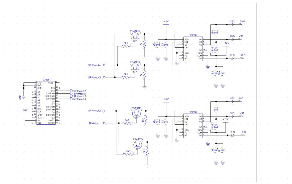 The scope of work for writing Arduino code is only for making pure sine waves using the Pulse Width Modulation (PWM) method and I haven’t thought about voltage feedback, protection and so on.