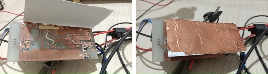 In my initial testing, I encountered the issue of the microcontroller resetting itself, and the preliminary suspicion is that there was interference due to switching. By adding copper tape to enhance the ground plane, this interference issue was effectively resolved. In the PCB design, there are several traces carrying significant power, and these traces should be carefully designed to minimize interference.