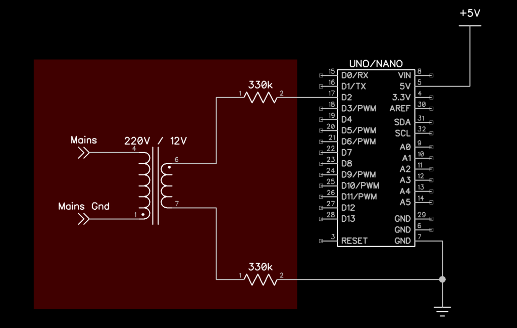 That event will trigger an interrupt so that it calls the interrupt service routine (ISR) which I named interruptZeroCross.