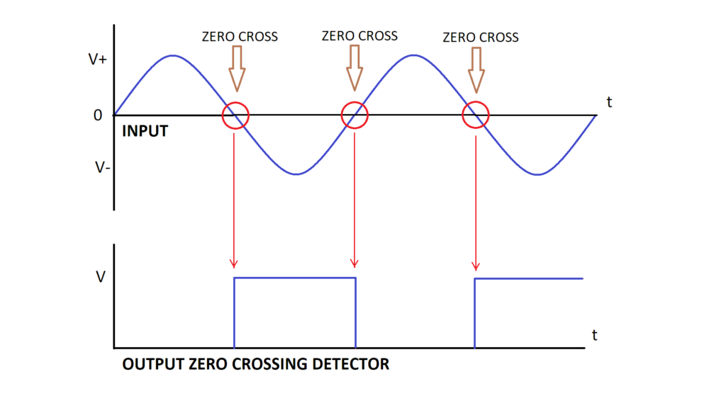 An AC signal that changes from positive to negative or vice versa will pass through 0V (Zero Crossing).